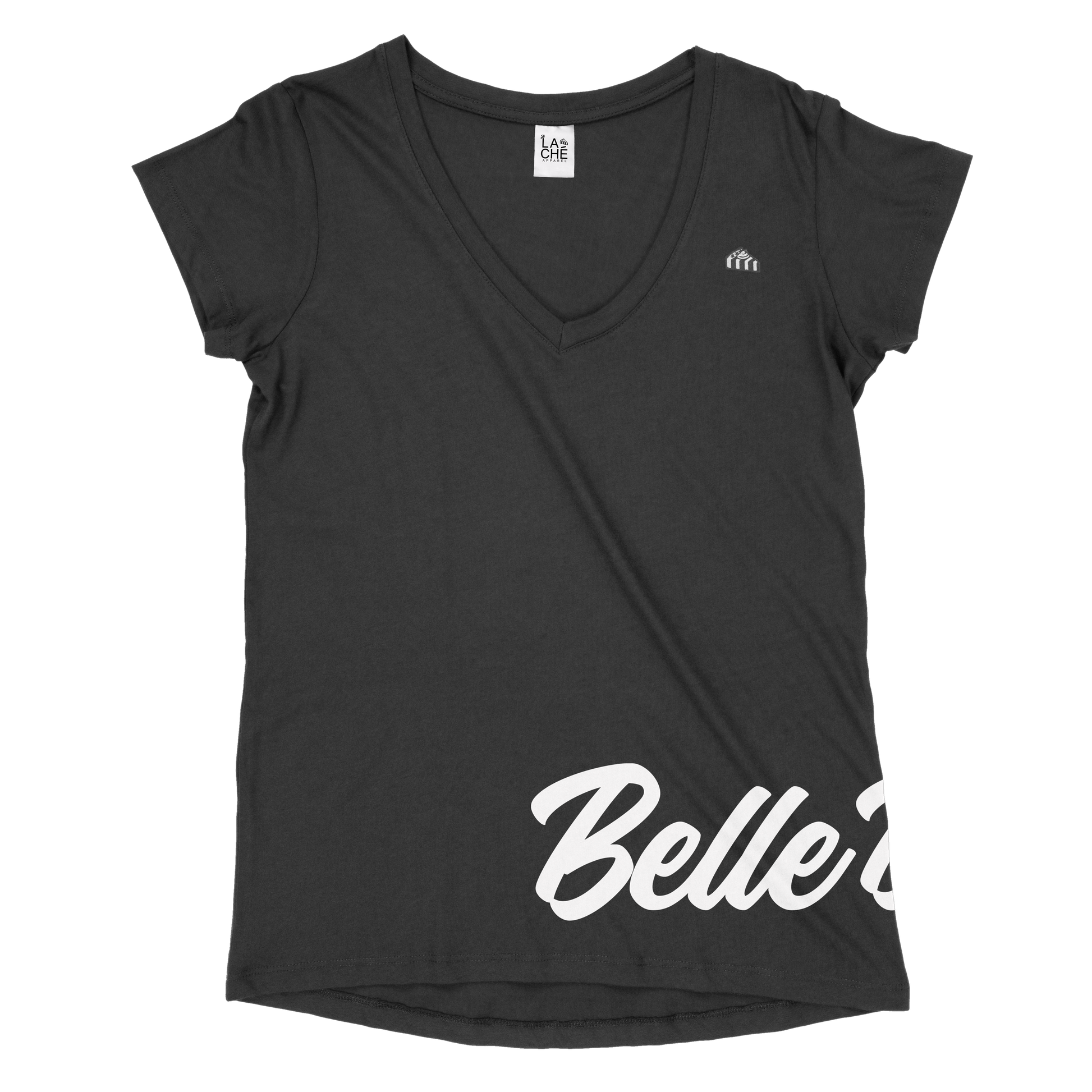 The Belle Doyenne Sig V features an open neck with a moderate deep vee. Super soft material is on the thinner side. Runs smaller than expected. This soft and pre-shrunk V Neck hugs your skin with it’s 100% ring-spun cotton. It shows off the feminine silhouette well, with its ribbed v-neck and taped neck and shoulders.